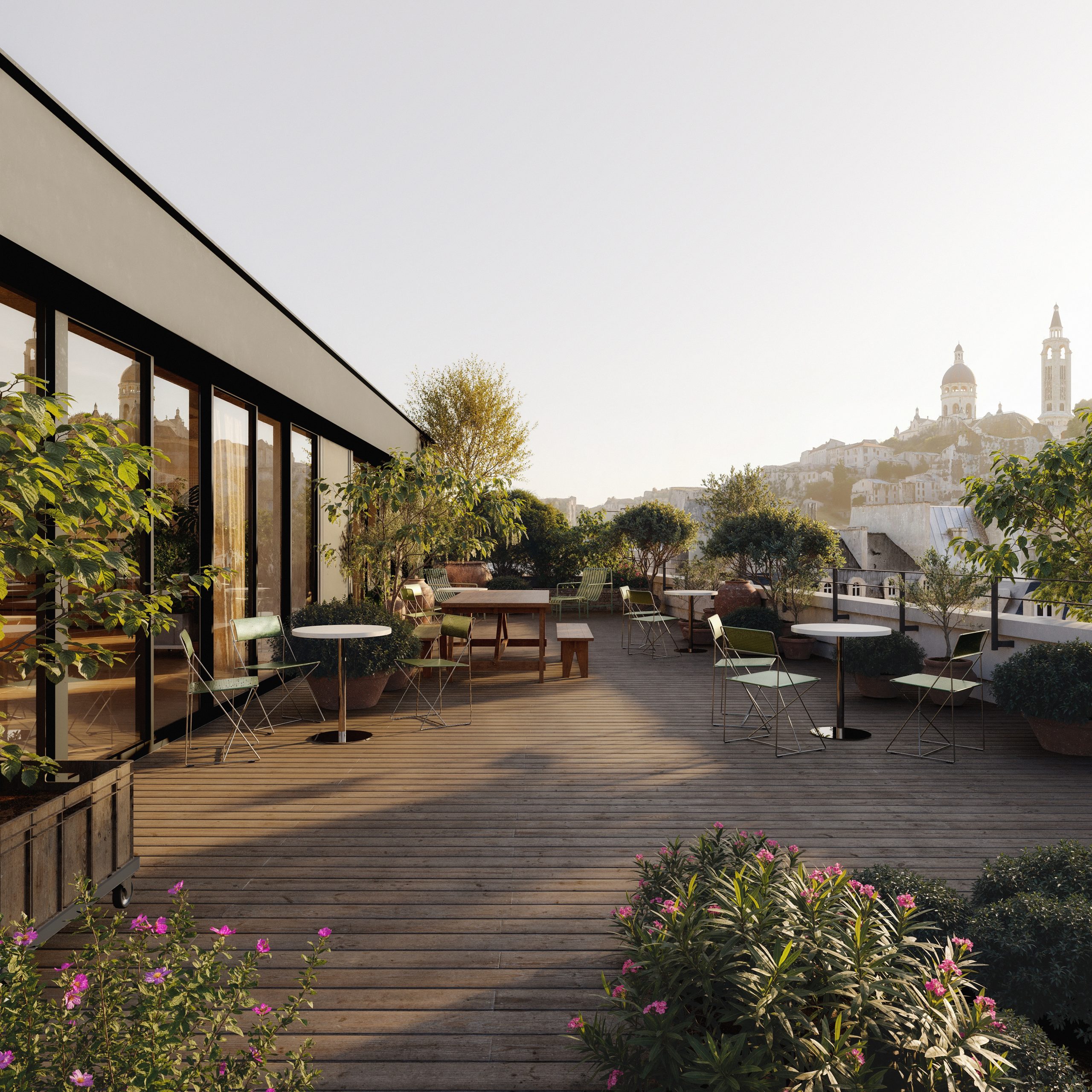 Atout majeur : un rooftop premium avec deux salles de réunion ou de créativité panoramiques et deux terrasses donnant sur les faces secrètes de Montmartre et du Sacré-Cœur.