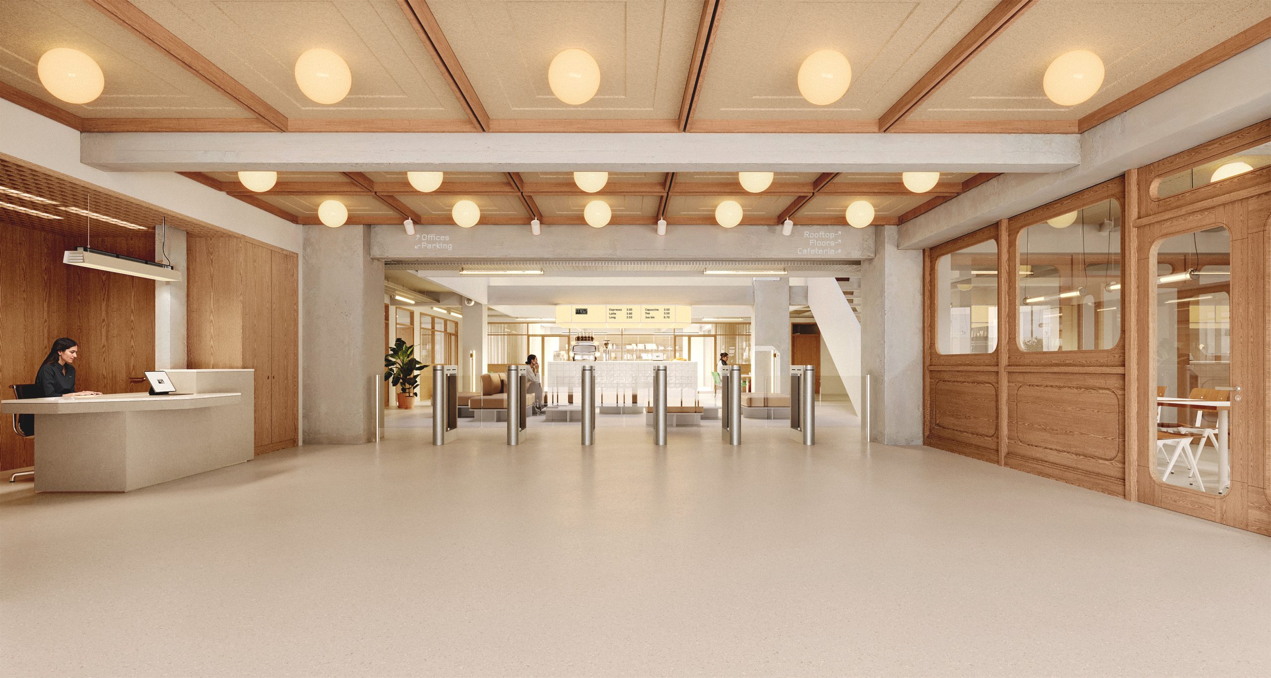Avec deux façades sur rue, d’une façade sur jardin et d’une verrière de 110m² sur le toit, les plateaux de bureaux de 750m² bénéficient d’apports de lumières exceptionnels.
